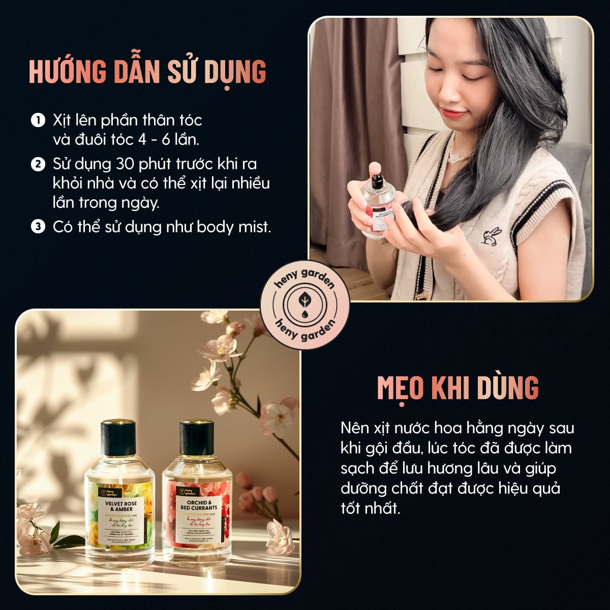 5. Hướng dẫn sử dụng nước hoa thơm tóc - xịt thơm tóc Heny Garden